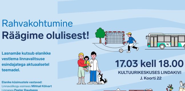Teisipäeval, 17. märtsil Lindakivi Kultuurikeskuses toimub rahvakohtumine, kus Lasnamäe elanikel on võimalus arutada linna ja linnaosa arenguküsimusi otse Tallinna juhtide ja esindajatega.