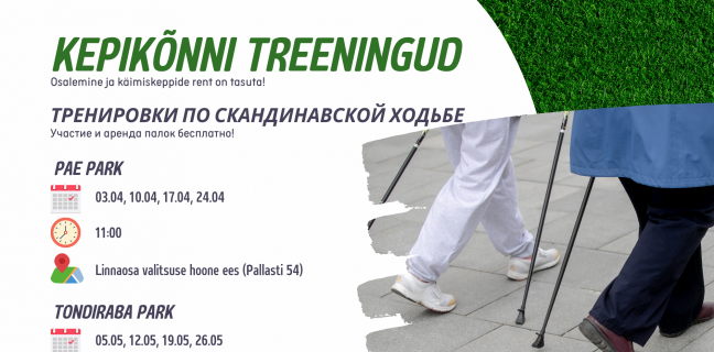Lasnamäe tasuta kepikõnnitreeningud kolivad Tondiraba parki