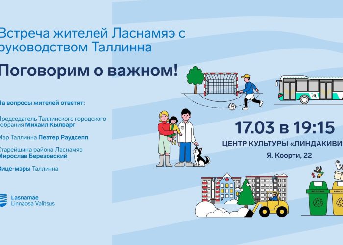 Во вторник, 17 марта, в центре культуры «Линдакиви» состоится встреча с жителями Ласнамяэ, на которой вопросы развития города и района можно будет обсудить напрямую с руководством Таллинна и представителями управы.
