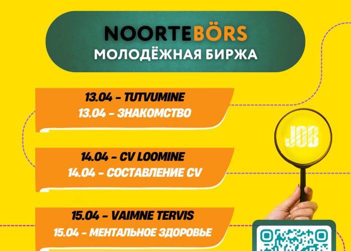 Во время предстоящих школьных каникул, с 13 по 17 апреля 2026 года, в Молодёжном центре Ласнамяэ пройдет учебно-познавательный проект NoorteBörs 2026, направленный на молодых людей в возрасте от 16 лет.