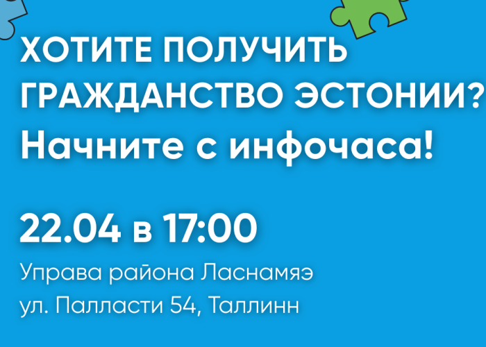 На встрече будет представлен обзор условий и процесса получения гражданства Эстонии, а также возможностей, которые предлагает Фонд интеграции для изучения эстонского языка и подготовки к экзамену на гражданство.